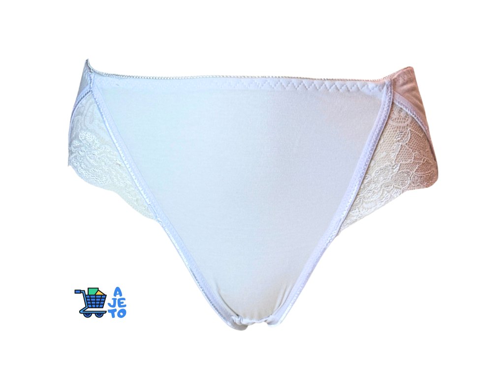 Přední část je hladká a příjemná na dotek, zatímco boční díly zdobí jemná krajka, která dodává prádlu ženský a elegantní vzhled. Klasický střih poskytuje komfort po celý den bez nepříjemného škrcení.