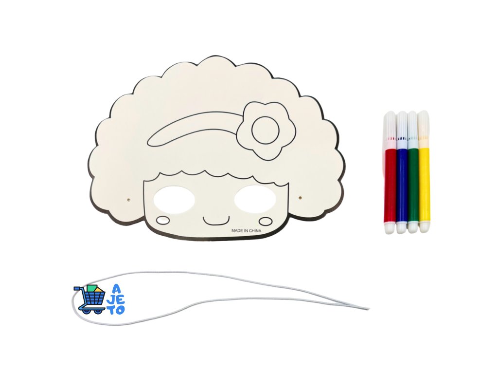 Balení obsahuje papírovou masku, elastickou gumičku pro snadné nasazení a čtyři barevné fixy
