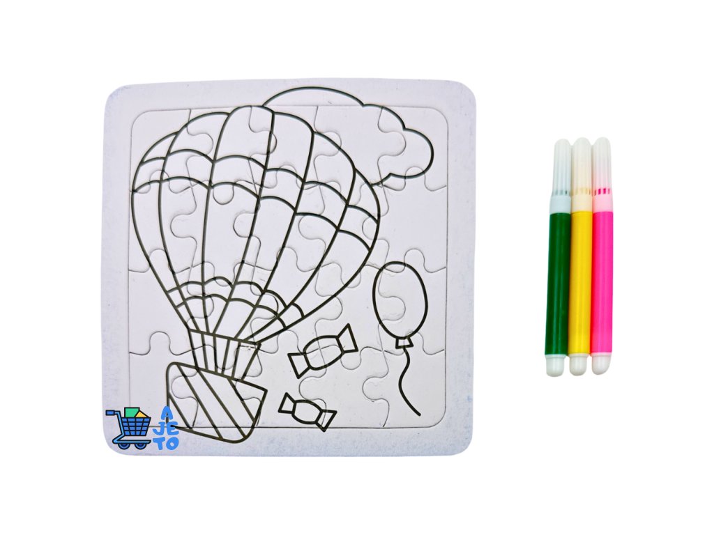 Balení obsahuje puzzle k vymalování a sadu tří barevných fixů