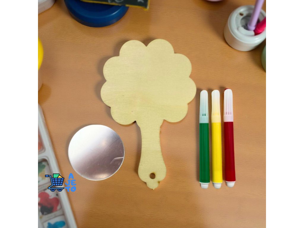 DIY sada na výrobu dřevěného zrcátka je ideální kreativní aktivitou pro děti. Sada obsahuje dřevěný výřez, malé zrcátko a tři barevné fixy. Děti si nejprve dřevěný tvar podle fantazie vymalují a poté pomocí samolepicí vrstvy snadno připevní zrcátko.