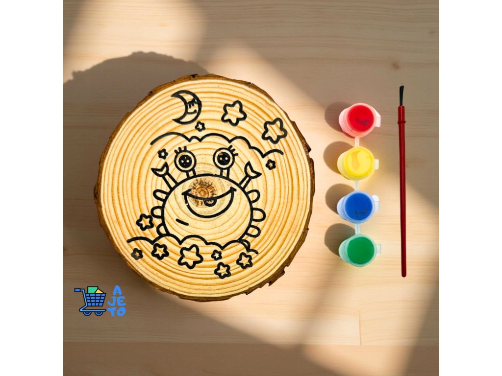 DIY sada na malování je ideální kreativní zábavou pro děti doma, ve školce i na různých tvořivých akcích. Dřevěný obrázek je vyroben z přírodní dřevěné kulatiny, která díky viditelným letokruhům dodává každému kusu originální a přírodní vzhled.