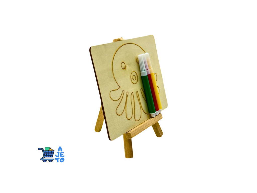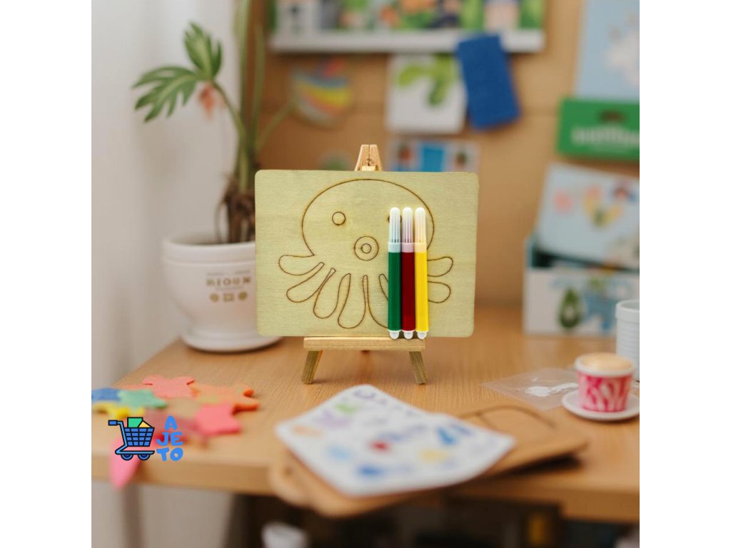DIY sada na malování obsahuje dřevěný obrázek k vymalování, stojánek a 3 barevné fixy