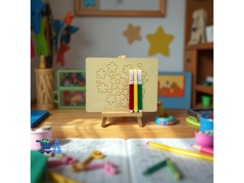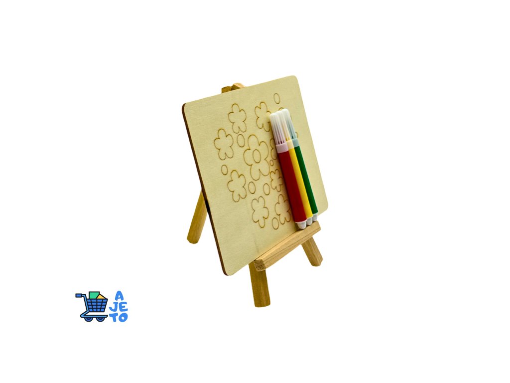 DIY sada na malování obsahuje dřevěný obrázek k vymalování, stojánek a 3 barevné fixy