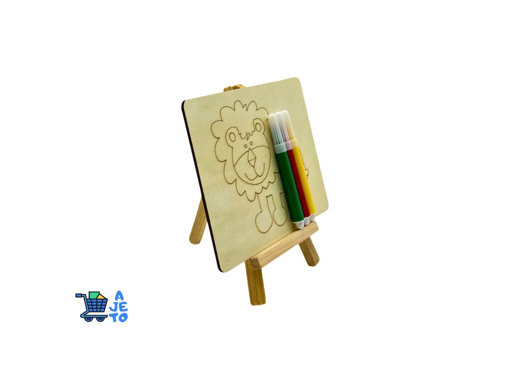 DIY sada na malování obsahuje dřevěný obrázek k vymalování, stojánek a 3 barevné fixy
