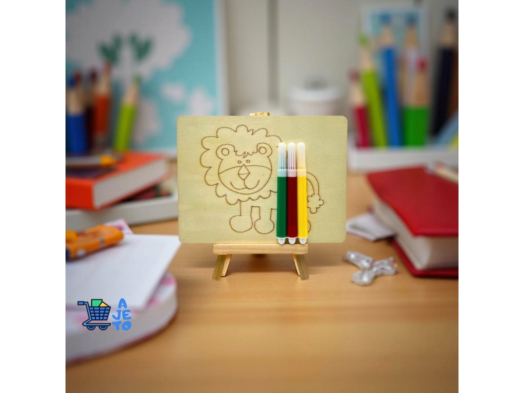 Kreativní DIY sada na malování potěší všechny malé umělce. Dřevěný obrázek s vygravírovaným motivem je připraven k okamžitému vybarvování pomocí přiložených fixů. Díky praktickému stojánku lze hotový obrázek jednoduše vystavit jako dekoraci do dětského pokoje.