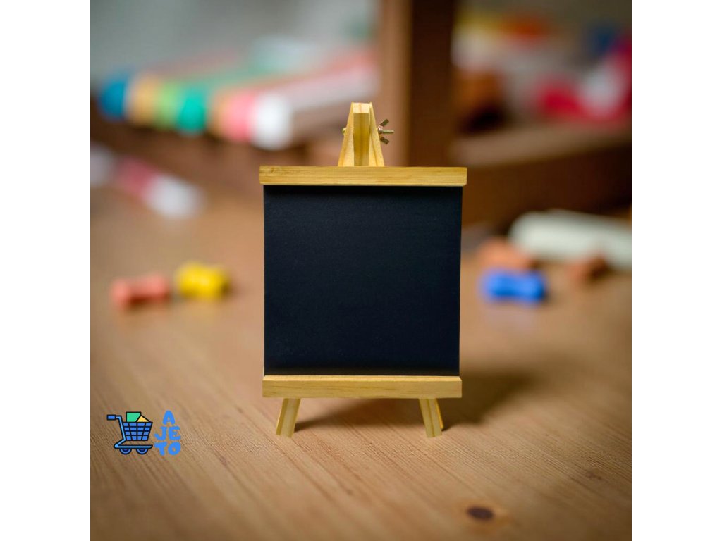 - Typ: křídová tabule s dřevěným stojanem.