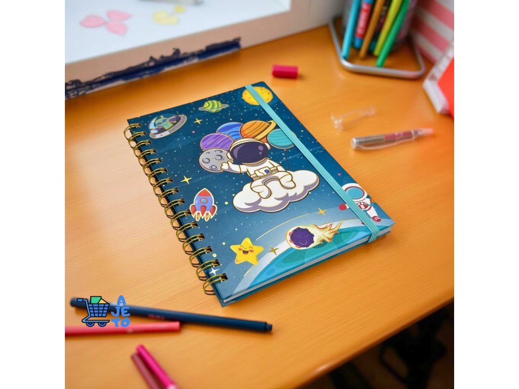 Stylový kroužkový zápisník s veselým motivem a linkovanými stránkami