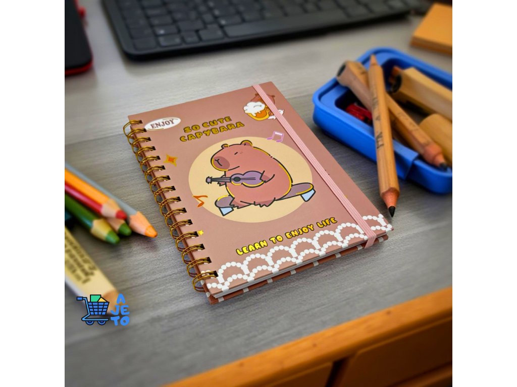 Stylový kroužkový zápisník s veselým motivem a linkovanými stránkami