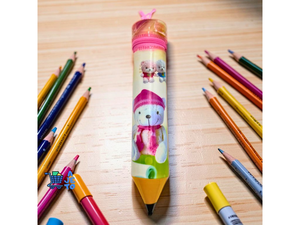 Originální dětský penál ve tvaru velké tužky zaujme na první pohled svým hravým designem. Je ideální do školy, na kroužky i na domácí tvoření. Díky rozměru 25 × 10 cm nabízí dostatek prostoru na pera, pastelky, fixy i drobné školní pomůcky.