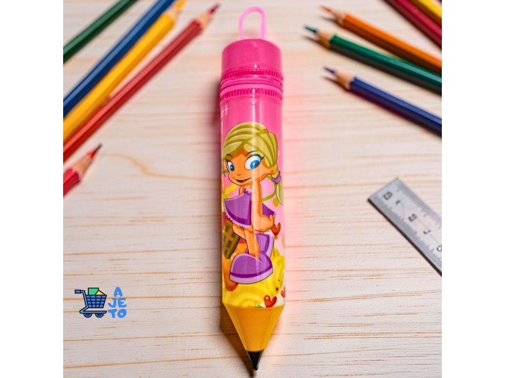 Originální dětský penál ve tvaru velké tužky zaujme na první pohled svým hravým designem. Je ideální do školy, na kroužky i na domácí tvoření. Díky rozměru 25 × 10 cm nabízí dostatek prostoru na pera, pastelky, fixy i drobné školní pomůcky.