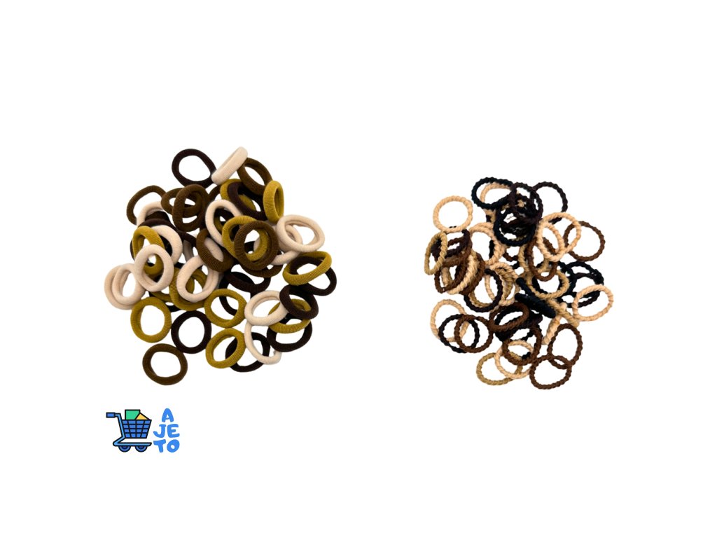 Praktická sada gumiček do vlasů obsahující několik desítek nylonových gumiček ve dvou typech