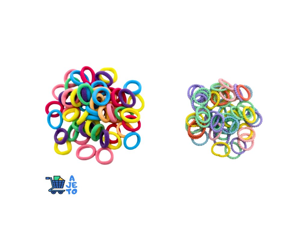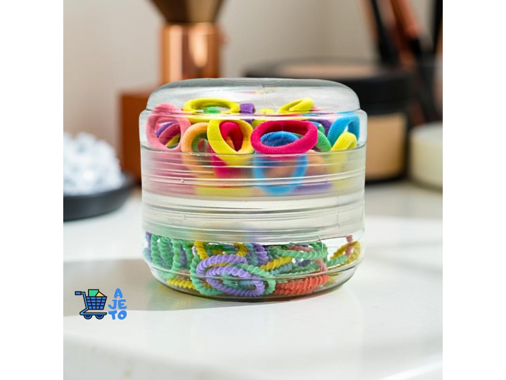 Praktická sada gumiček do vlasů obsahující několik desítek nylonových gumiček ve dvou typech