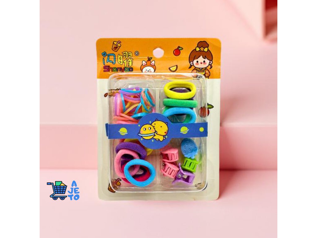 ✨ Veselá sada gumiček a mini skřipců pro hravé a rychlé účesy.