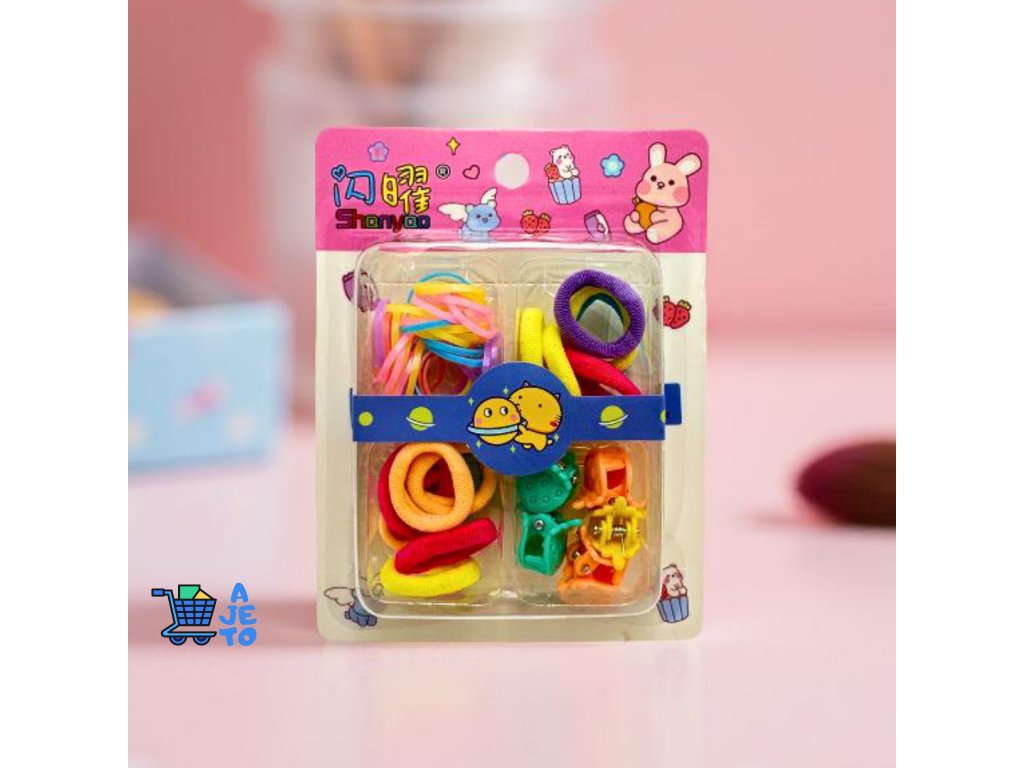 ✨ Veselá sada gumiček a mini skřipců pro hravé a rychlé účesy.