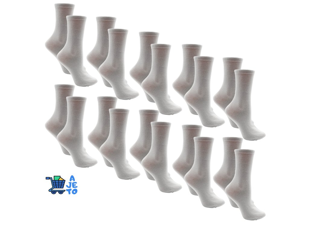 Set 10 párů dámských ponožek je praktickou volbou pro každý den. Díky vysokému podílu bavlny jsou ponožky měkké, prodyšné a pohodlné i při celodenním nošení. Příměs polyesteru zajišťuje lepší tvarovou stálost a delší životnost.