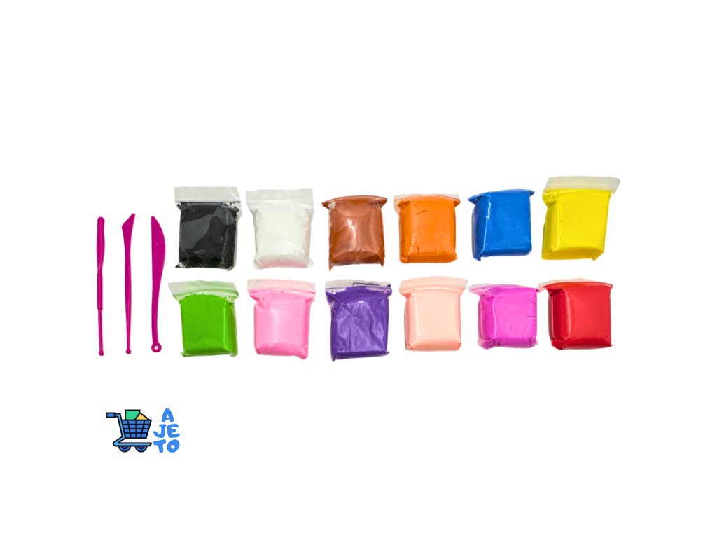 Set obsahuje 12 různých barev modelíny, se kterými mohou děti vytvářet různé tvary, postavičky nebo dekorace. Součástí balení jsou také 3 modelovací nástroje pro tvarování, řezání a zdobení modelíny.