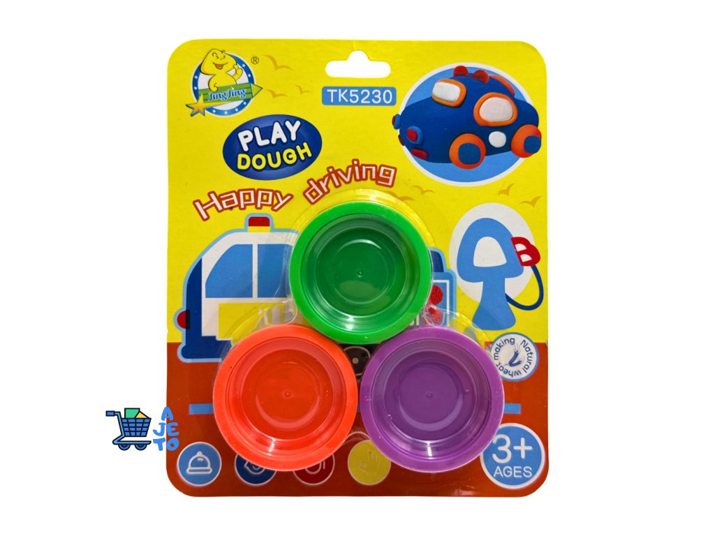 Set obsahuje tři různé barvy modelíny, se kterými mohou děti vytvářet různé tvary, postavičky nebo jednoduché modely.