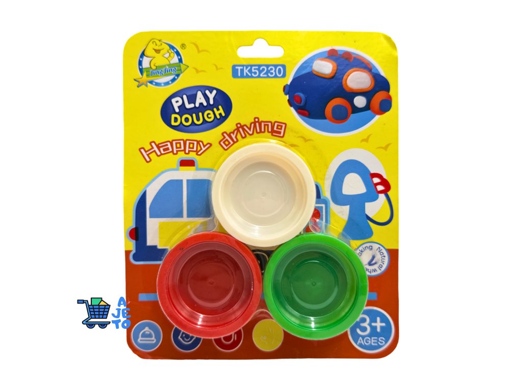 Set obsahuje tři různé barvy modelíny, se kterými mohou děti vytvářet různé tvary, postavičky nebo jednoduché modely.