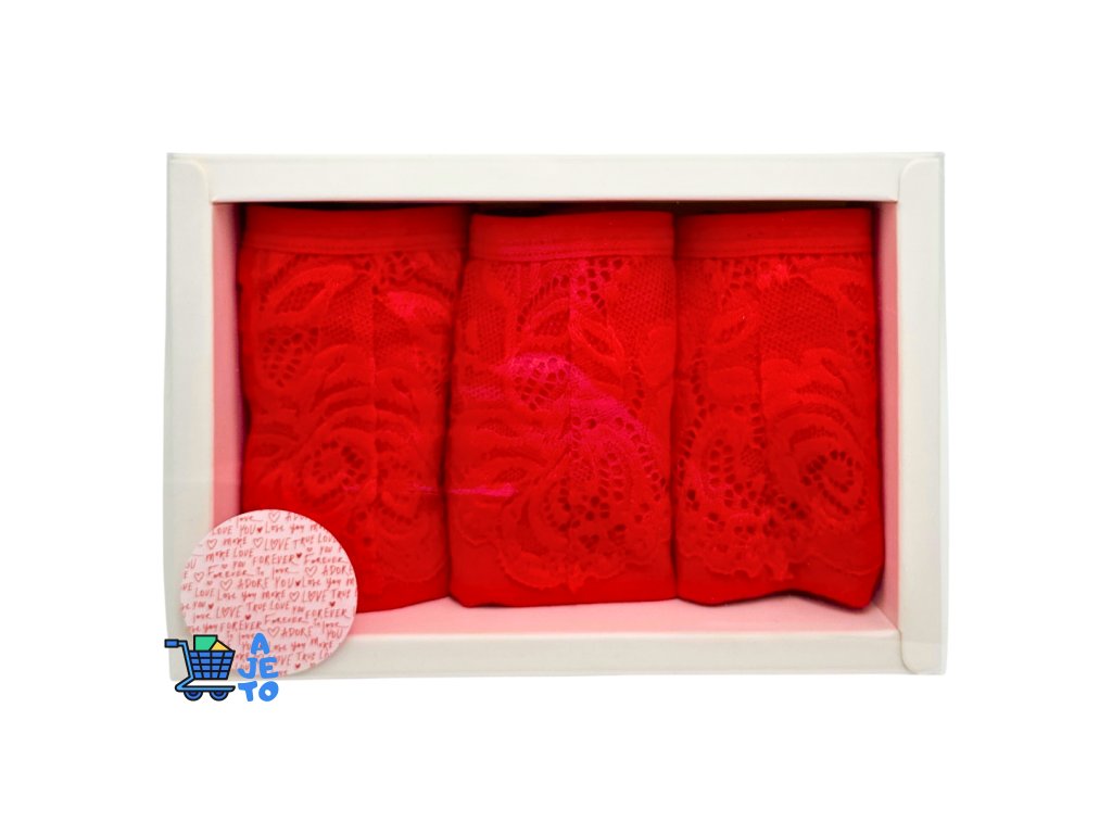 Valentýnský set dámských kalhotek v elegantní dárkové krabičce je ideální volbou jako dárek pro výjimečnou osobu – nebo jen tak pro radost. Set obsahuje 3 ks kalhotek v romantickém designu, který podtrhuje jemná krajka a sytá červená barva symbolizující lásku.