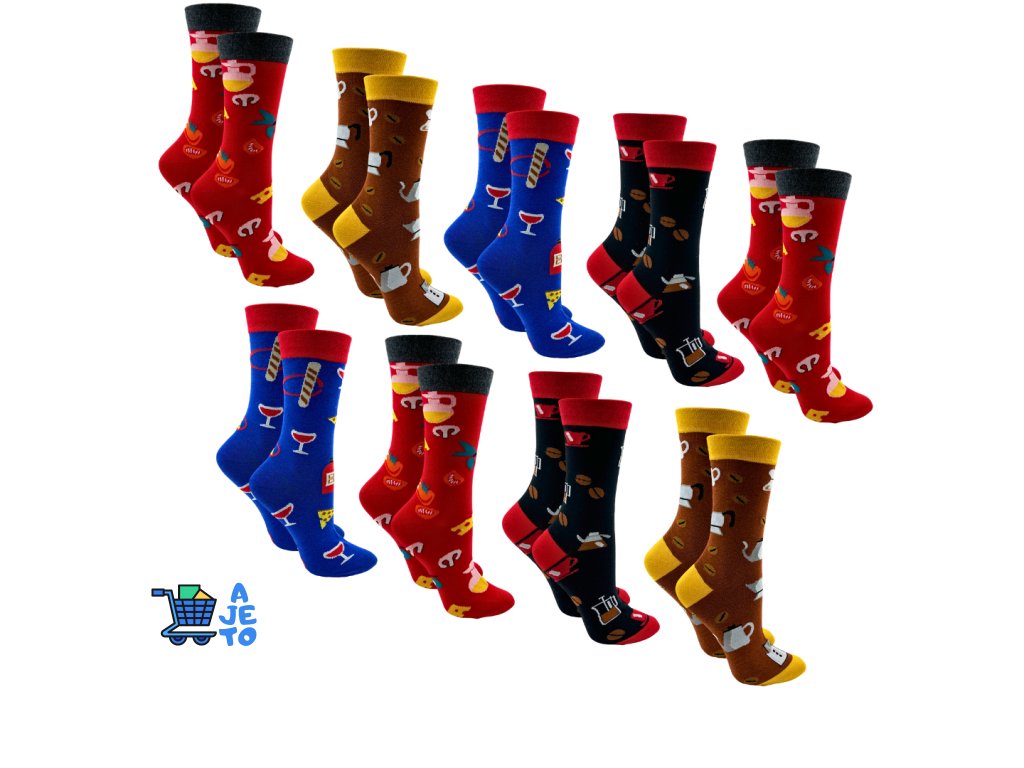 Stylové bavlněné ponožky s barevnými a veselými motivy, které rozzáří každý den. Jsou vyrobené z kvalitní bavlny s příměsí elastanu, takže jsou příjemné na nošení, prodyšné a zároveň pružné. Balení obsahuje 9 párů ponožek v různých motivech a barevných kombinacích, takže budete mít vždy po ruce originální doplněk pro každou příležitost. Ideální na každý den i jako veselý dárek.